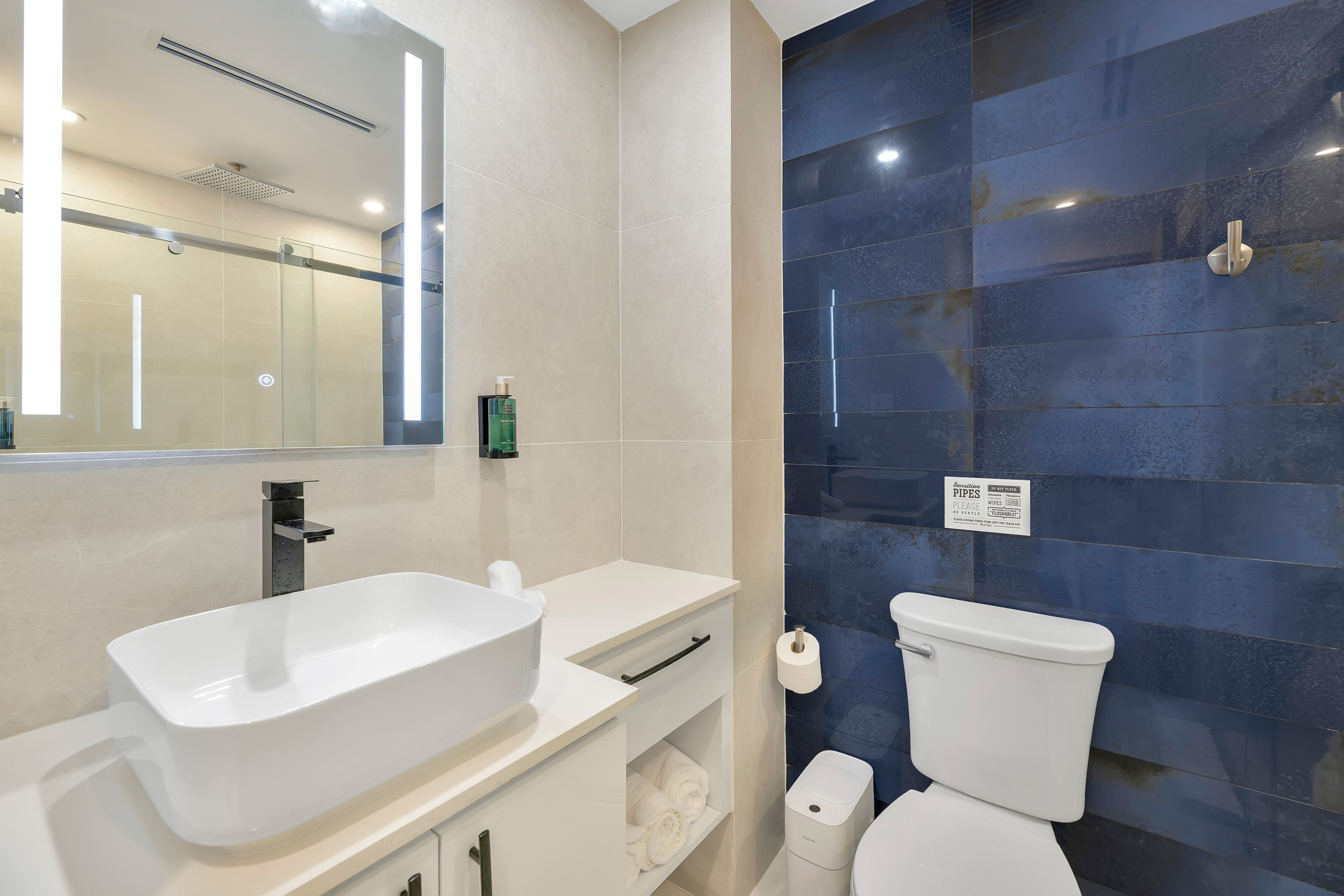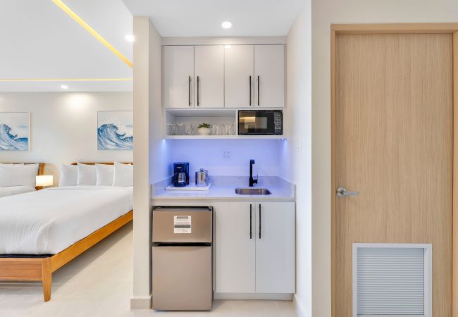The space features a convenient kitchenette, thoughtfully equipped with a mini fridge, sink, and coffee maker, making it easy to enjoy light refreshments during your stay.