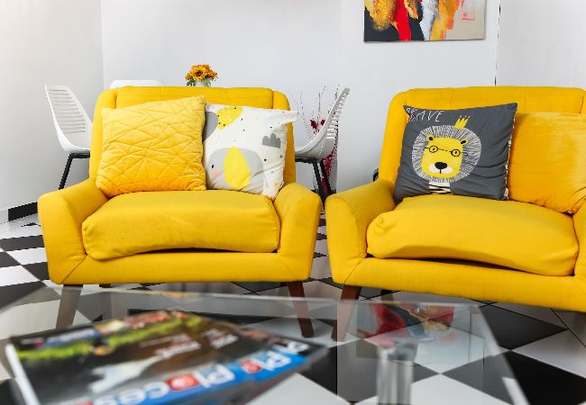 The building does not have an elevator, you must climb stairs to get to the apartment. The apartment features high ceilings and a welcoming living space, creating a bright and open atmosphere. The comfortable sofa is perfect for unwinding after a day of exploring, whether you want to relax with a book, enjoy a conversation, or take in the scenic views of Miramar through the large floor-to-ceiling windows.