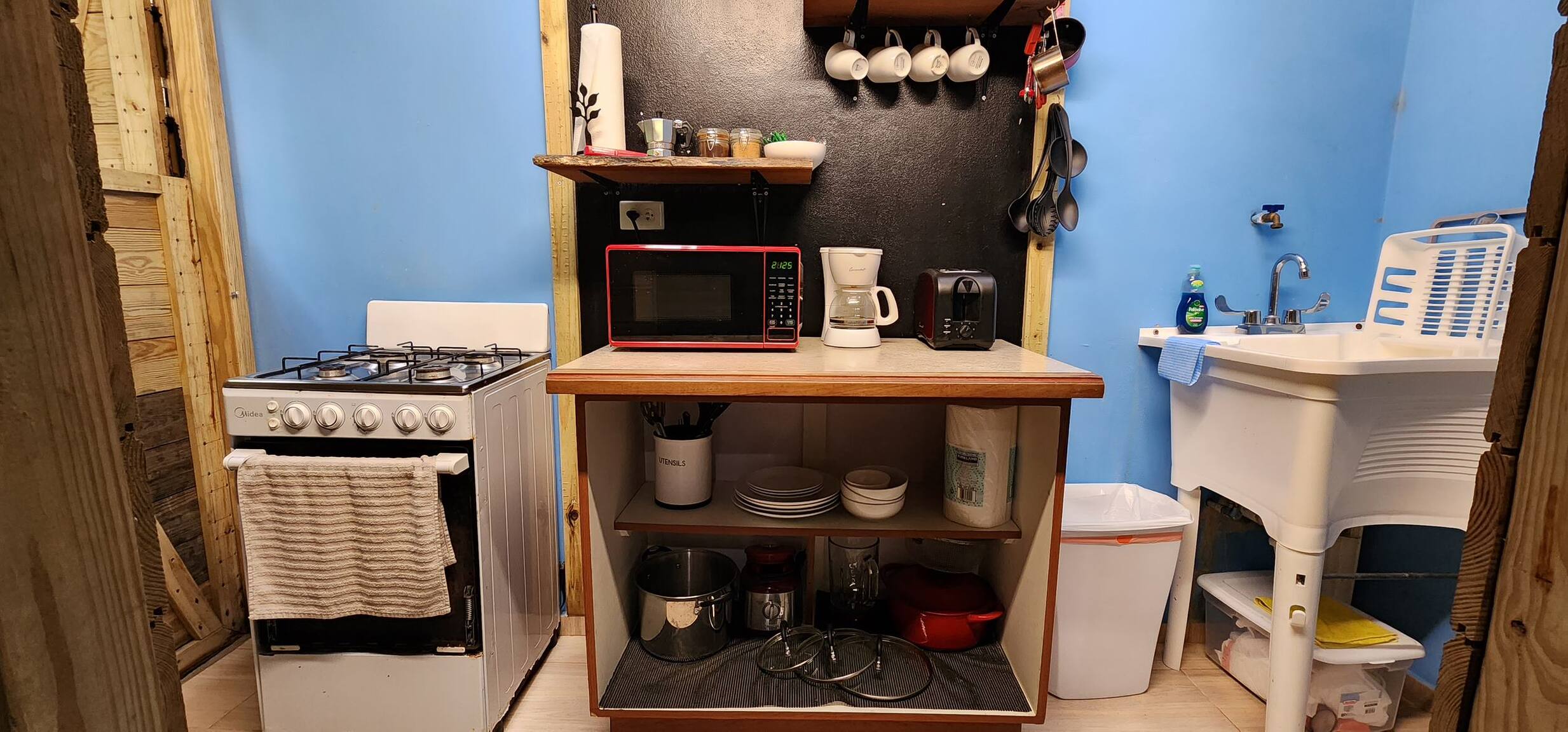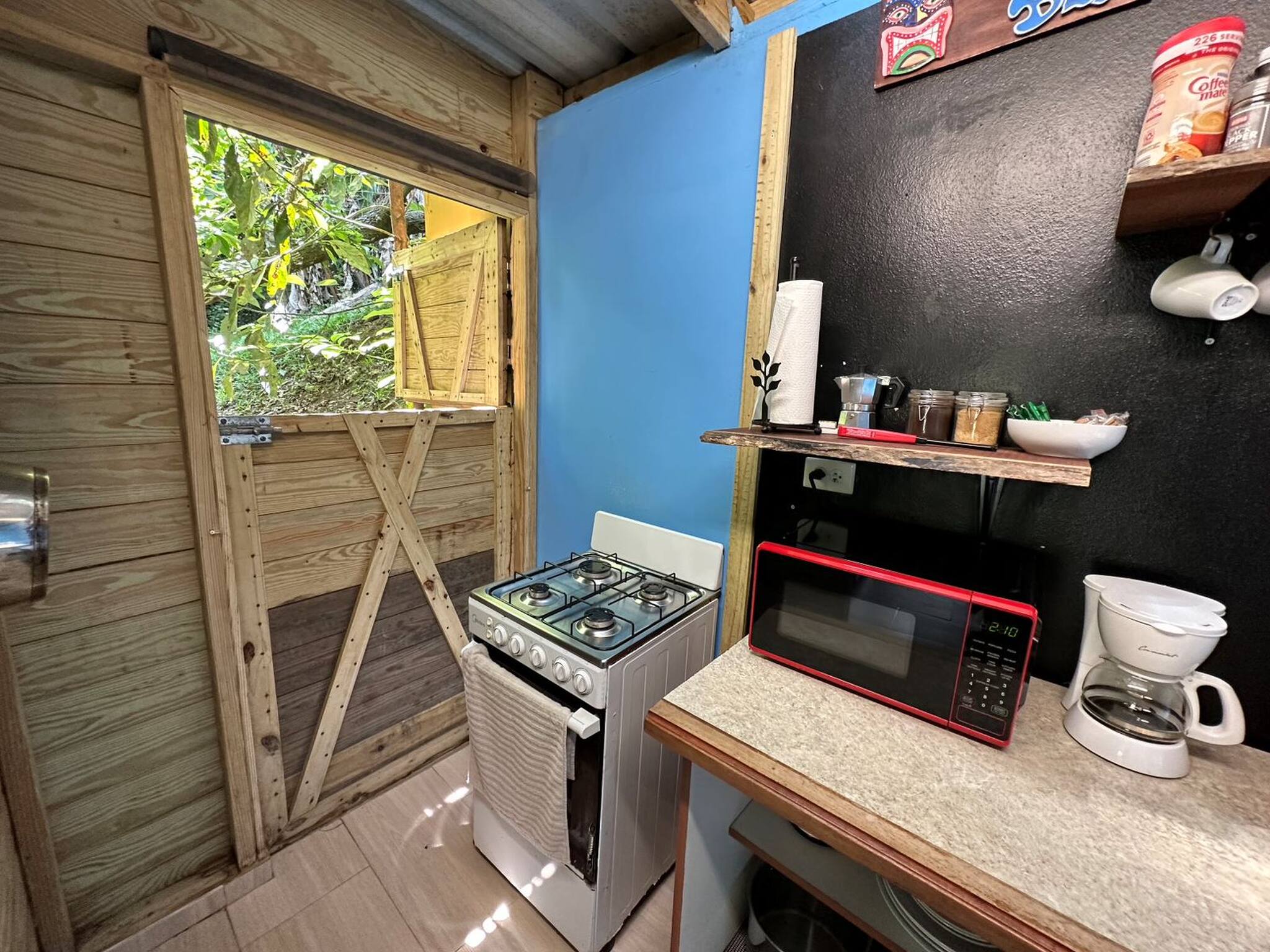 The cabin was built with a Tiny House concept in mind, but it is very comfortable and well equipped with everything you will need: electricity, running water, a beautiful Kitchenette, outdoor BBQ and Wi-Fi. You will enjoy the abundance of nature, listen to the sounds of the native coquí and simply relax. There is a lot of parking space and it is in a very accessible spot between the boundaries of Cayey an Cidra where just a few minutes of driving can get you to where you need to be.
