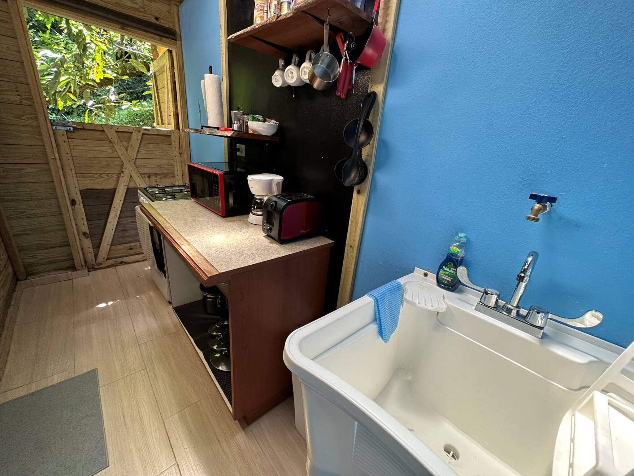 Located within the mountains of Cayey and Cidra, this cabin is in the perfect spot where just about everything is nearby. The house is surrounded by trees in a private farm where the owners live. As mentioned before, nearby are many local restaurants and chinchorros where you can enjoy P.R.'s traditional food like roasted pig. Conveniently close is also Walmart Supercenter (5 min drive), the highway 52 (3 min drive) which takes you to the airport at Isla Verde area, and Old San Juan (35 min drive) and more. There are also three hospitals very nearby, El Hospital Menonita de Cayey and El Hospital Menonita de Caguas and el Hospital Hima a little further away through the Highway 52. Note that travel time can vary depending on traffic. We have a backup solar systems for energy and water tank. Utilizamos energía solar y baterías por lo que invitamos a nuestros huéspedes a ahorrar energía manteniendo las luces que no están en uso apagadas.